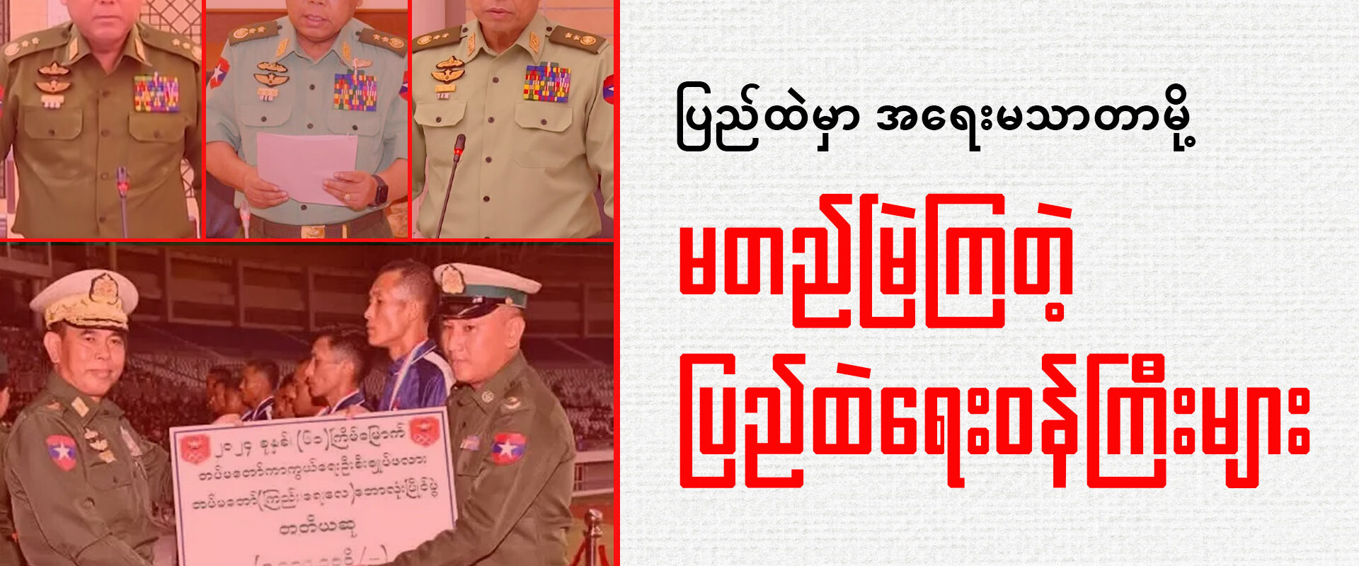 ဒါတင်မကသေးပါဘူး၊ ရှမ်းမြောက်က ၁၀၂၇ စစ်ဆင်ရေး၊ ရခိုင်ပြည်စစ်ဆင်ရေးတွေမှာ စစ်ကောင်စီရဲ့ စစ်ဘက်အရာရှိကြီးပိုင်းတွေ ဖြစ်တဲ့ ဗိုလ်မှူးကြီး၊ ဗိုလ်မှူးချုပ် အဆင့်တွေအထိပါ သေဆုံးတာ၊ စစ်သုံ့ပန်းအဖြစ် ဖမ်းဆီးခံရတာတွေ စတဲ့ကြီးမားတဲ့ ပြုန်းတီးမှုတွေလည်း ရှိခဲ့တာဖြစ်ပါတယ်။