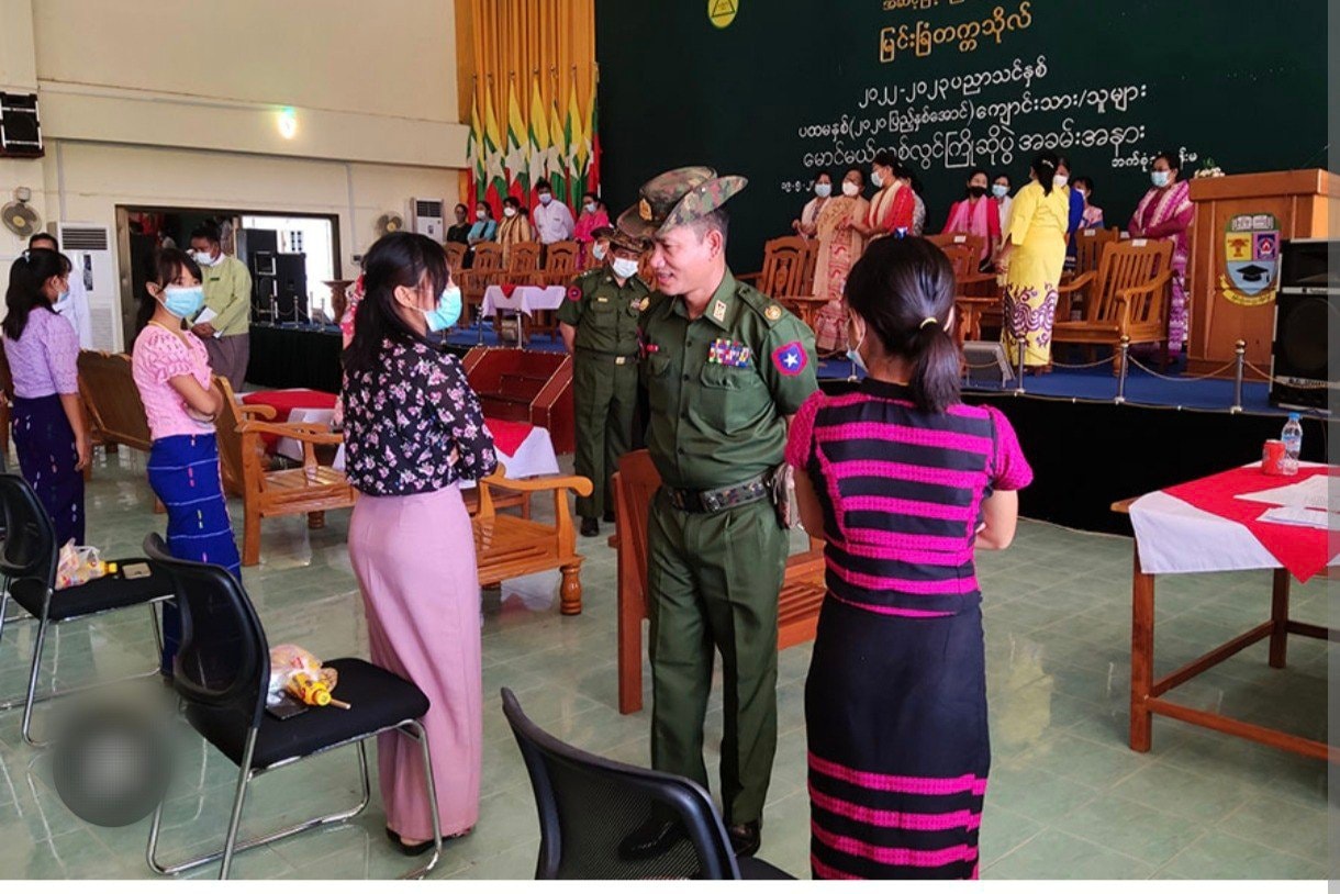 ပုံ-မြင်းခြံတက္ကသိုလ်မောင်မယ်သစ်လွင်ကြိုဆိုပွဲတွင် အကြမ်းဖက်စစ်ကောင်စီတပ် အရာရှိတစ်ဦးကို တွေ့ရစဉ်(ပုံအဟောင်း)
