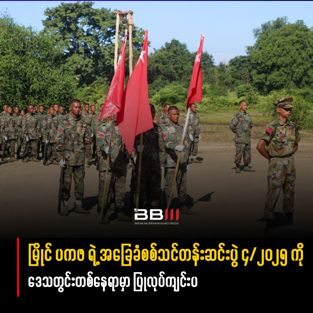 မြိုင်မြို့နယ် ပကဖ က ဦးစီးပြုလုပ်တဲ့ အခြေခံစစ်သင်တန်း(၄/၂၀၂၅)၊ သင်တန်းဆင်းပွဲကို ဒေသတွင်းတစ်နေရာမှာ ပြုလုပ်ကျင်းပခဲ့တယ်လို့ မြိုင်မြို့နယ် ပကဖ က ဒီဇင်ဘာလ ၁၄ ရက်မှာ ထုတ်ပြန်ခဲ့ပါတယ်။