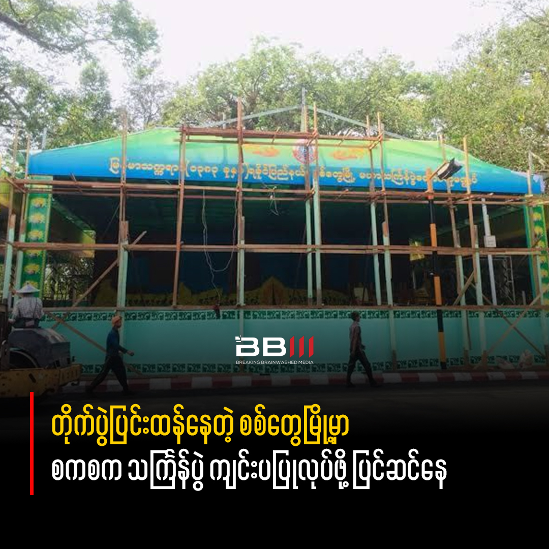 စစ်တွေမြို့ပေါ်မှာ စစ်ကောင်စီတပ်ဟာ သင်္ကြန်ပွဲကျင်းပပြုလုပ်ဖို့အတွက် ဆရာတော် ဦးဥတ္တမ ပန်းခြံရှေ့မှာ ဗဟိုမဏ္ဍပ်ကြီးတွေဆောက်လုပ်နေသလို အစိုးရရုံးရှေ့နဲ့ မိဇံရပ်ကွက်ရှိ ကမ်းနားလမ်းနေရာတွေမှာပါ ဗဟိုမဏ္ဍပ်ကြီးတွေဆောက်လုပ်နေတယ်လို့ စစ်တွေဒေသခံတွေဆီက သိရပါတယ်။