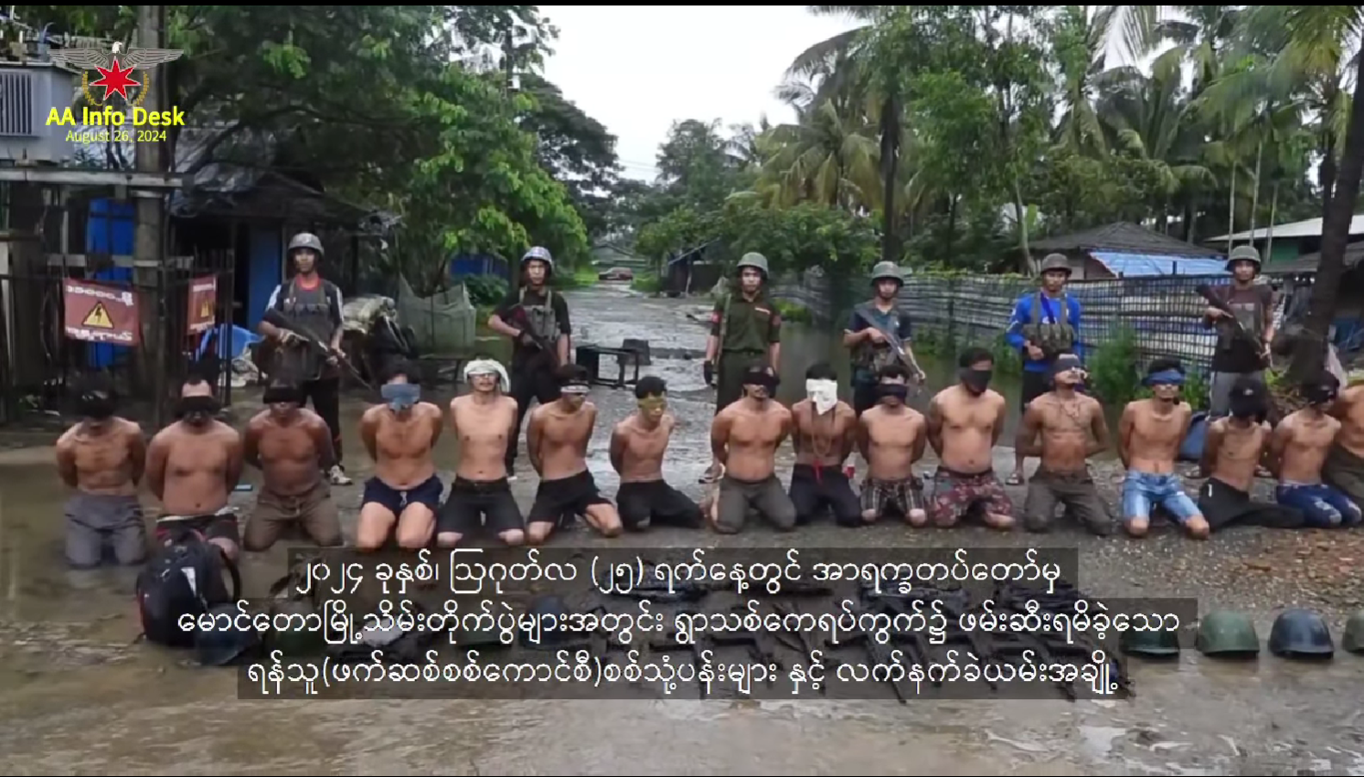 ရခိုင်ပြည်နယ်၊ မောင်တောမြို့နယ်အတွင်းရှိ အာရက္ခတပ်တော် AA တပ်ဖွဲ့ဝင်တွေရဲ့ လက်နက်ခဲယမ်းတွေကို ယူဆောင်ပြီး ထွက်ပြေးခဲ့တဲ့ စစ်သုံ့ပန်း ၂ ဦးကို ပြန်လည် ဖမ်းဆီးရမိပြီးဖြစ်တယ်လို့ AA စစ်ရေးသတင်းရင်းမြစ်တွေက ဆိုပါတယ်။